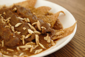200 grams (4 skewers) + sauce + fried bread